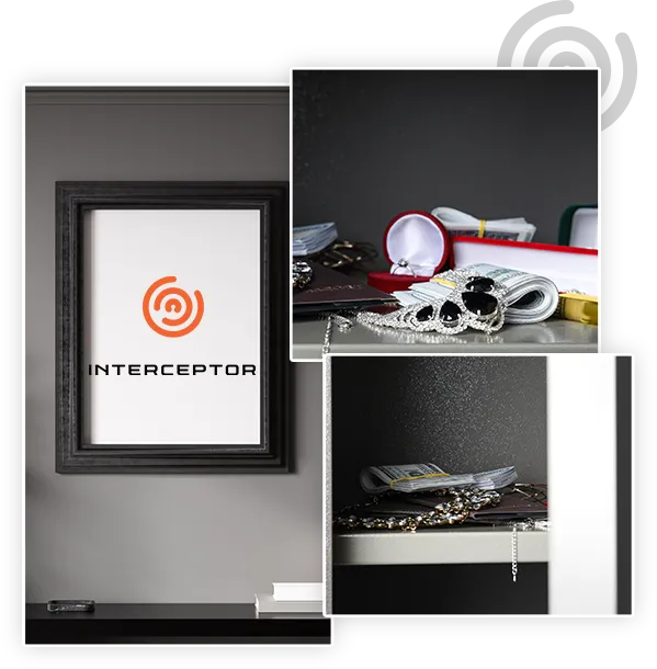 IInterceptor is the world's most discreet, easiest-to-use security system, designed to blend perfectly into any decor and protect your cash, jewelry, documents, weapons, and other valuables from unauthorized people. It is small enough to fit in any room and difficult to recognize even if someone breaks into your house.